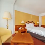 Aro Palace Hotel boasts a range of elegantly appointed rooms and suites, including the standout Presidential Apartment on the 7th floor. Guests will be mesmerized by the room's panoramic views of the old town, encapsulating the beauty of the Black Church and Tampa Mountain. Every air-conditioned room is fitted with modern conveniences such as a minibar, cable TV, and an en-suite bathroom, ensuring a blend of luxury and comfort.